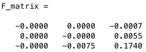 Fig 3. (left) Estimated fundamental matrix by default (right) Estimated fundamental matrix from points with noise (normalization workaround)