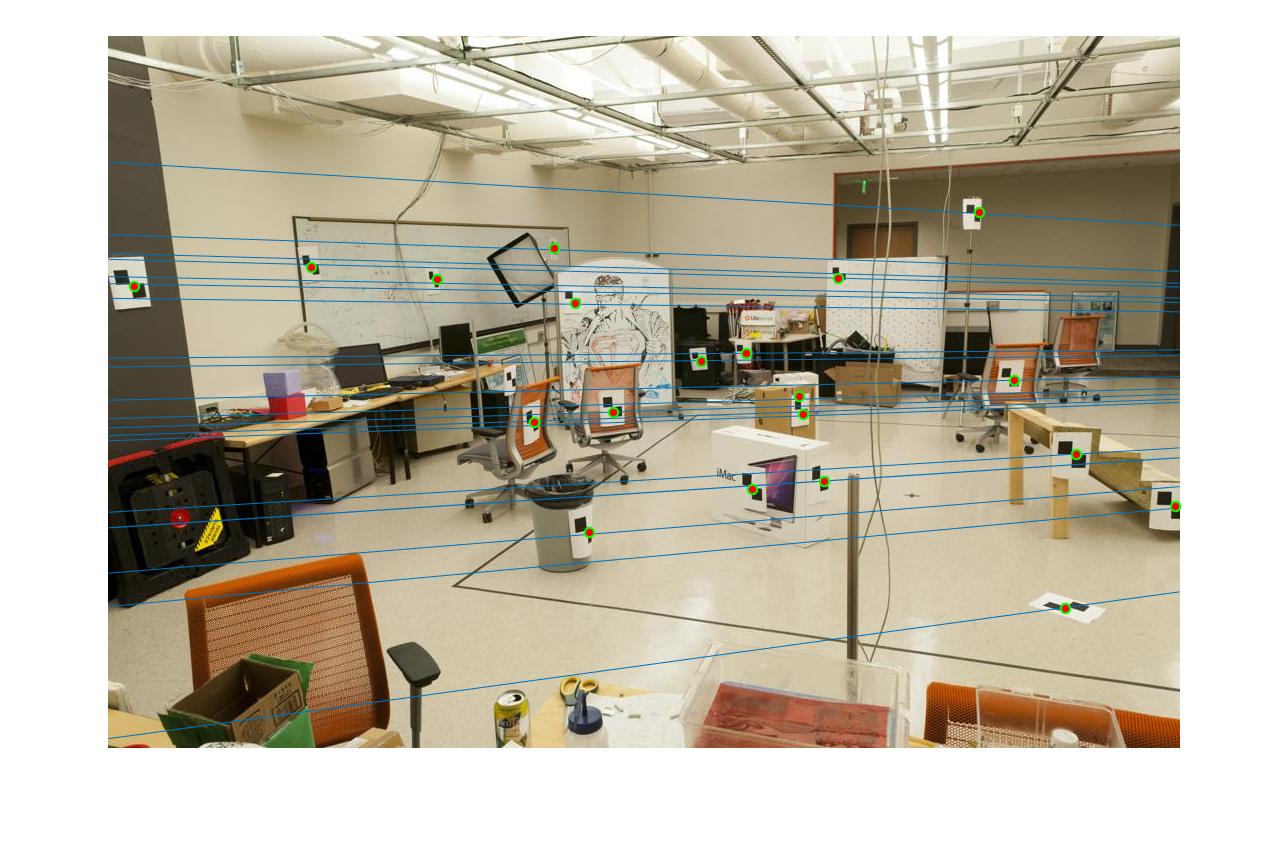 % 2) pass in the point correspondences, stored as new vectors samp_a and samp_b, to our estimate_fundamental_matrix() implementation from Part 2.